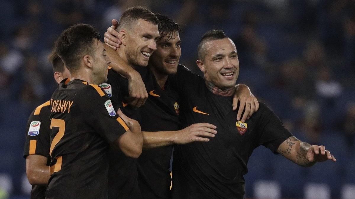 Roma(4-3-3):  Alisson 7 – Kolarov 8, Fazio 6.5, Manolas 7 (Moreno 0, 79.), Florenzi 8 – Nainggolan 8 (Gerson 0, 75.), Rossi 7, Pellegrini 7.5 – Shaarawy 8.5, Dzeko 9, Ünder 7 (Schick 0, 75.)