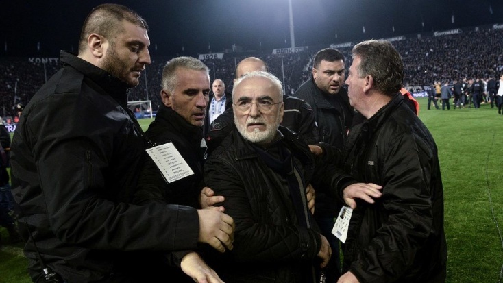Pisztollyal rohant a pályára a PAOK elnöke, Ivan Szavvidisz a hétvégi, AEK Athén elleni mérkőzés 90. percében. Gól nélküli állásnál a rendes játékidő utolsó percében gólt szerzett a hazai pályán játszó PAOK, csakhogy a játékvezető les miatt nem adta meg azt. Óriási balhé tört ki a pályán, néhány perc múlva pedig az elnök – négy testőr kíséretében – is megjelent a gyepen, oldalán egy fegyverrel. A helyi beszámolók szerint indulatosan a játékvezető felé igyekezett, és fenyegető mondatokat intézett irányába, a pisztolyt azonban nem húzta elő. Ivan Szavvidisz és négy testőre ellen letartóztatási parancsot adtak ki Görögországban, a helyettes sportminiszter pedig bejelentette, hogy felfüggesztik az élvonalbeli bajnokságot.