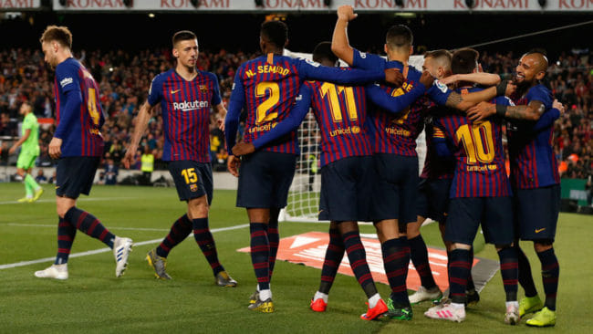 FC Barcelona (4-3-3): Ter Stegen 7.4 – Semedo 6.9, Piqué 7.3, Lenglet 6.7, Alba 7.5 – Vidal 7.6, Rakitic 7.5, Arthur 7.3 (Busquets 6.2, 73.) – Dembélé 7.2 (Roberto 6.5, 84.), Suárez 7.2, Coutinho 7.6 (Messi 8.2, 46.)