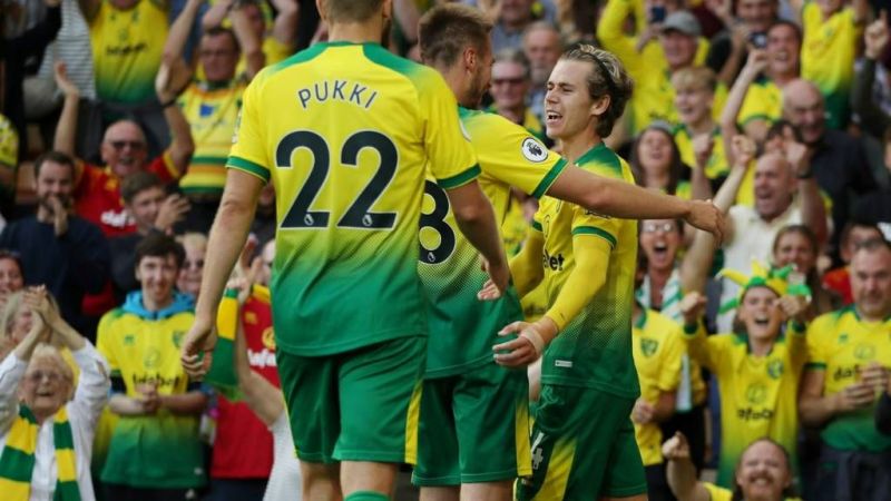 Norwich City (4-5-1): Krul 7.4 – Byram 7.2, Amadou 6.4, Godfrey 6.8, Lewis 6.5 – Buendia 7.9 (Drmic 6.2, 83.), Tettey 6.7, Stiepermann 5.8 (Srbeny, 89.), Mclean 7.9, Cantwell 6.8 – Pukki 7.6
