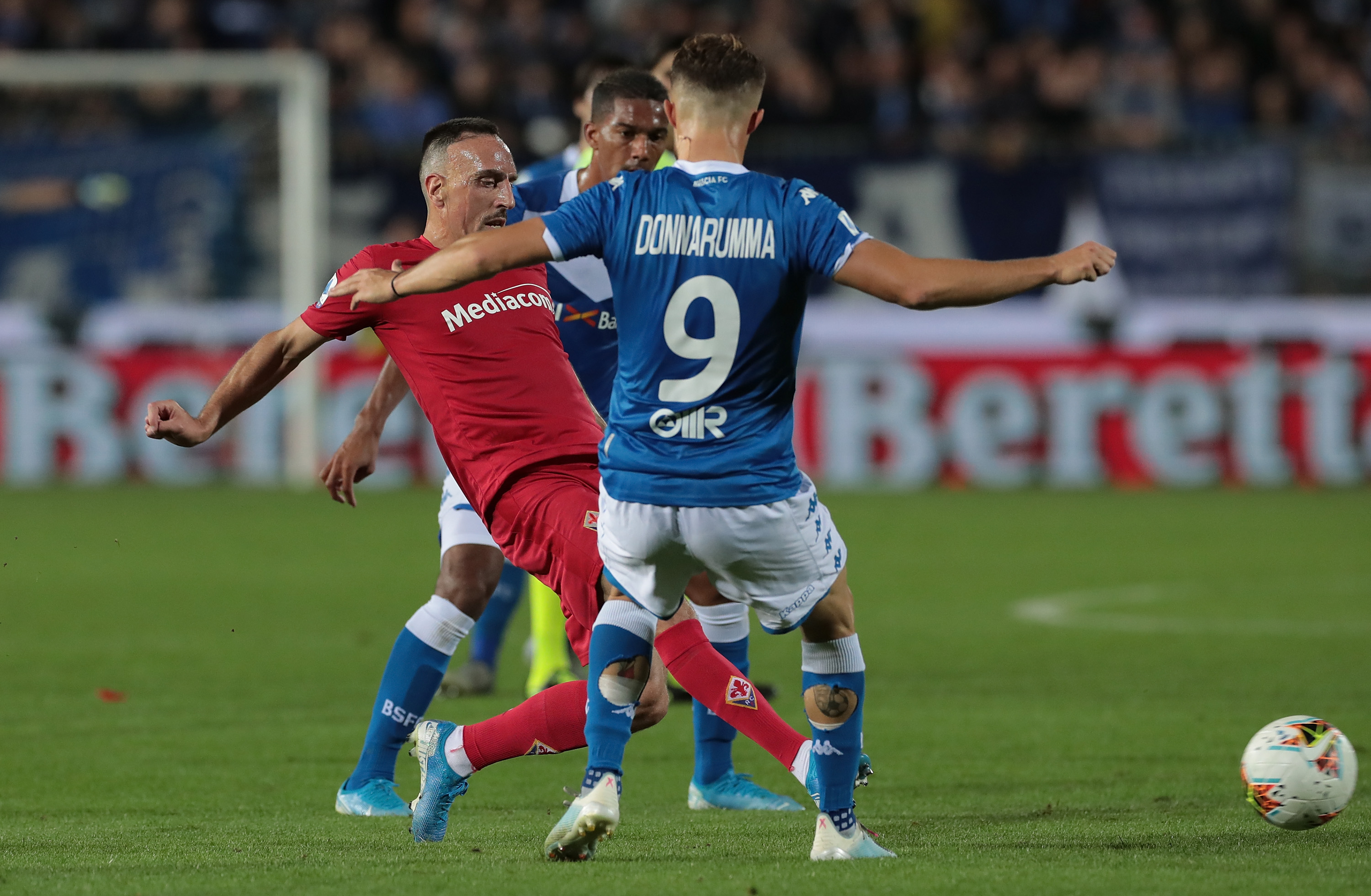 BRESCIA, ITALY – OCTOBER 21: Franck Ribery of ACF Fiorentina is challenged by Alfredo Donnarumma of Brescia Calcio during the Serie A match between Brescia Calcio and ACF Fiorentina at Stadio Mario Rigamonti on October 21, 2019 in Brescia, Italy. (Photo by Emilio Andreoli/Getty Images)