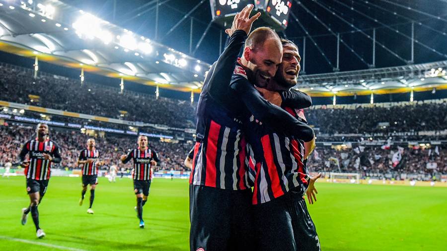 Eintracht Frankfurt (3-5-2): Rønnow 10 – Touré 6.8 (Abraham 6.3, 30.), Hasebe 6.7, Hinteregger 6.9 – Da Costa 7.8, Rode 6.5, Fernandes 6.8, Sow 6.7 (Kohr 6.8, 84.), Kostic 8.1 – Paciência 8.2, Dost 7.4 (Gacinovic 6.4, 85.)