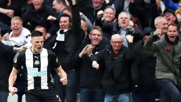 Newcastle United (5-4-1): Dubravka 6.8 – Yedlin 6.0, Fernández 7.7, Lascelles 7.0, Clark 7.4, Willems 7.8 (Dummett 6.4, 87.) – Almirón 6.5, Hayden 7.2, Shelvey 7.6, Saint-Maximin 6.7 (Atsu 6.8, 77.) – Joelinton 7.0 (Carroll 6.5, 89.)