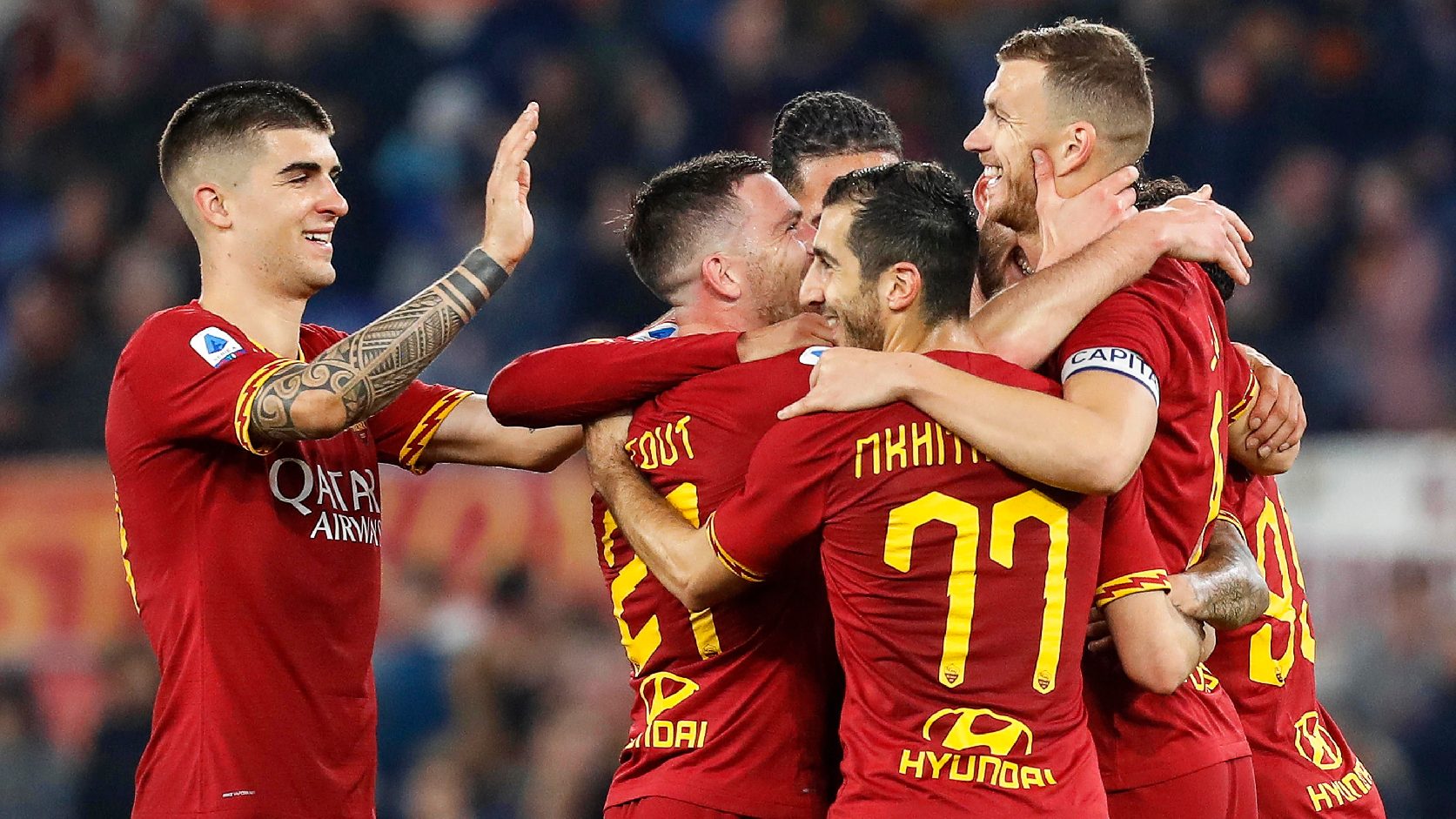 AS Roma (4-2-3-1): López 7.5 – Peres 7.6, Smalling 7.7, Mancini 7.4, Kolarov 8.2 – Ünder 8.0 (Pérez, 61.), Cristante 7.2, Pellegrini 7.5 (Kluivert, 46.), Veretout 7.6, Mkhitaryan 8.3 – Džeko 8.7 (Kalinic, 81.)