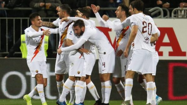 AS Roma (4-2-3-1):López 6.5 – Peres 6.9 (Santon, 84.), Smalling 5.5, Fazio 6.4, Kolarov 7.2 – Ünder 7.6 (Pérez, 76.), Villar 6.6, Mkhitaryan 8.7, Cristante 6.8, Kluivert 7.2 (Veretout, 85.) – Kalinic 9.4