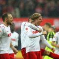 Bundesliga, 8. forduló Október 19., Szombat 15:30 RB Leipzig-VfL Wolfsburg 1-1 Red Bull Arena Játékvezető: Aytekin Deniz RB Leipzig (4-4-2): Gulácsi 8.0 – Klostermann 6.8, Upamecano 6.8, Orban 6.8, Saracchi 7.4 – Sabitzer 7.8, Demme 6.4, Laimer 6.5 (Kampl 6.5, 76.), Nkunku 6.7 (Forsberg 6.6, 70.) – Poulsen 6.3, Werner 8.1 (Cunha 6.7, 86.) Kispad:(Mvogo, Mukiele, Haidara, … Folytatás