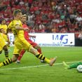 Bundesliga, 3. forduló Augusztus 31., Szombat 18:30 1. FC Union Berlin-Borussia Dortmund 3-1 (1-1) Stadion An der Alten Försterei Játékvezető: Felix Brych Dr. 1. FC Union Berlin (4-5-1): Gikiewicz 6.4- Trimmel 7.1, Friedrich 6.4, Subotic 6.7, Lenz 6.7 – Becker 7.1, Schmiedebach 6.0 (Gentner 6.5, 63.), Ujah 6.6 (Kroos 6.6, 80.), Andrich 6.5, Bülter 7.9 (Mees 6.3, … Folytatás