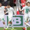 Bundesliga, 27. forduló Március 30., Szombat 15:30 1. FC Nürnberg-FC Augsburg 3-0 (0-0) Max-Morlock-Stadion Játékvezető: Siebert Daniel 1. FC Nürnberg (4-5-1): Mathenia 7.5 – Bauer 7.1, Mühl 6.9, Ewerton 6.7 (Margreitter, 54.), Leibold 6.7 – Kubo 6.7 (Ilicevic, 84.), Löwen 7.2, Behrens 6.3, Erras 7.2, Kerk 7.7 (Pereira, 70.) – Ishak 6.9 Kispad: ( Bredlow, Petrak, Tillman, … Folytatás
