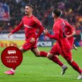 A német élvonalbeli labdarúgó-bajnokság (Bundesliga) 31. fordulójában a Bayern München idegenben 2–1-re győzött a Werder Bremen ellen. Thomas Tuchel együttese sokáig csak szenvedett a tabella második felében tanyázó brémaiak ellen, de a második félidő derekán Serge Gnabry megtörte a hazaiak ellenállását. Nem sokkal később Leroy Sané is betalált, és bár Niklas Schmidt hatalmas góllal szépített, az egyenlítés már nem jött össze … Folytatás