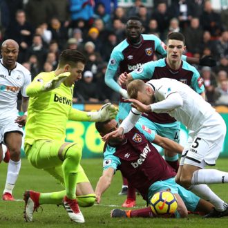 Premier League, 29. forduló Március 3., Szombat Swansea-West Ham United 4-1 (2-0) Liberty Stadion 20 829 néző Játékvezető: Martin Atkinson Swansea(3-5-2): Fabianski 6 – Mawson 7.5, Fernández 7, Hoorn 7.5 – Olsson 6.5, Clucas 7 (Abraham 0, 90.), Sung-yueng 8.5, King 7.5 (Carroll 0, 81.), Naughton 7.5 – A. Ayew 8.5 (Dyer 0, … Folytatás