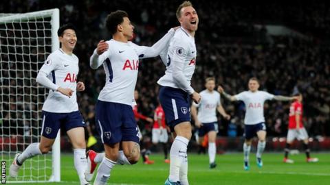Premier League, 25. forduló Január 31., Szerda Tottenham- Manchester United 2-0 (2-0) Wembley Stadion 76 251 néző Játékvezető: Andre Marriner Tottenham(4-2-3-1): Lloris 8 – Davies 7.5, Vertonghen 8.5, Sánchez 7.5, Trippier 8 – Dembélé 7.5 (Wanyama 0, 91.), Dier 7 – Heung-Min 6.5 (Lamela 0, 80.), Alli 7 (Sissoko 0, 88.), Eriksen 8.5 … Folytatás