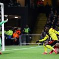 Premier League, 28. forduló Február 28., Péntek 21:00 Norwich City-Leicester City 1-0 (0-0) Carrow Road Játékvezető: Pawson Craig Norwich City (4-2-3-1): Krul 7.6 – Aarons 7.1, Godfrey 7.1, Hanley 7.4, Lewis 8.0 – Buendia 7.3, Tettey 7.1, Duda 7.7 (Stiepermann, 87.), Mclean 7.0, Cantwell 6.9 (Rupp, 68.) – Pukki 6.6 (Drmic, 81.) Kispad: (Mcgovern, … Folytatás