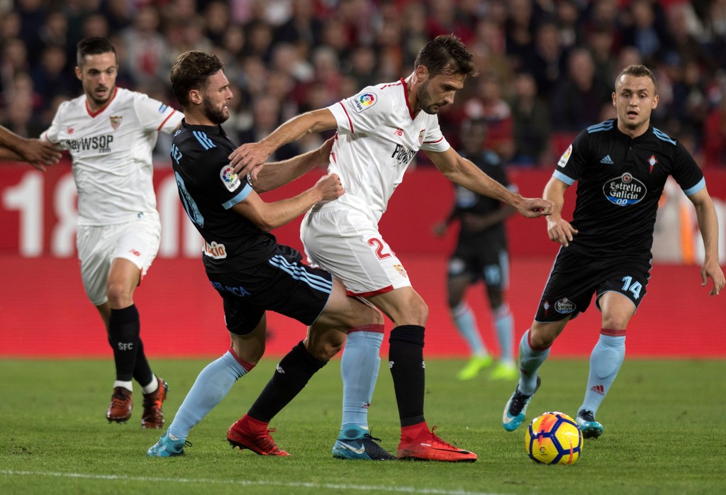 La Liga 12. forduló November 18. szombat Sevilla – Celta Vigo 2-1 (1-1) Ramón Sánchez-Pizjuán 35,092 néző Játékvezető: Carlos del Cerro Grande Sevilla (4-2-3-1): Soria 6.5 – Escudero 6.5, Lenglet 6.5, Geis 8, Corchia 7 (Simon Kjaer 6.5, 75.) – Pizarro 7, N’Zonzi 6.5 – Nolito 7.5 (Michael Krohn-Dehli 6, 83.), Vázquez 6.5 … Folytatás